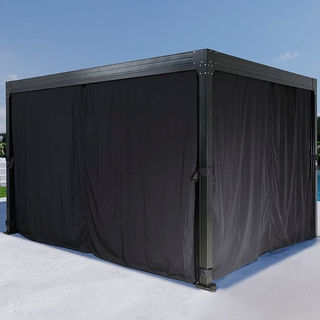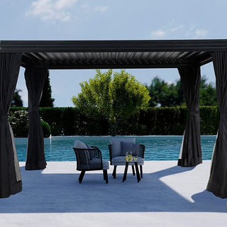 Supplied with sleek sidewall curtains and a mosquito net, this pergola offers additional comfort and privacy, allowing you to enjoy your outdoor space throughout the day and into the evening.