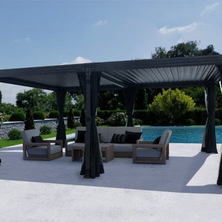 Bioclimatic Pergola Gazebo Monterey – 4 x 6 m with Curtains & Mosquito Net. Black