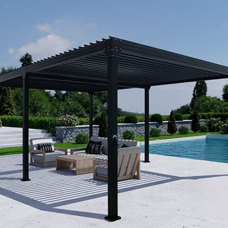 Designed to be low maintenance, the pergola requires only occasional cleaning with mild soap and water. Moving parts should be checked periodically to ensure smooth operation.